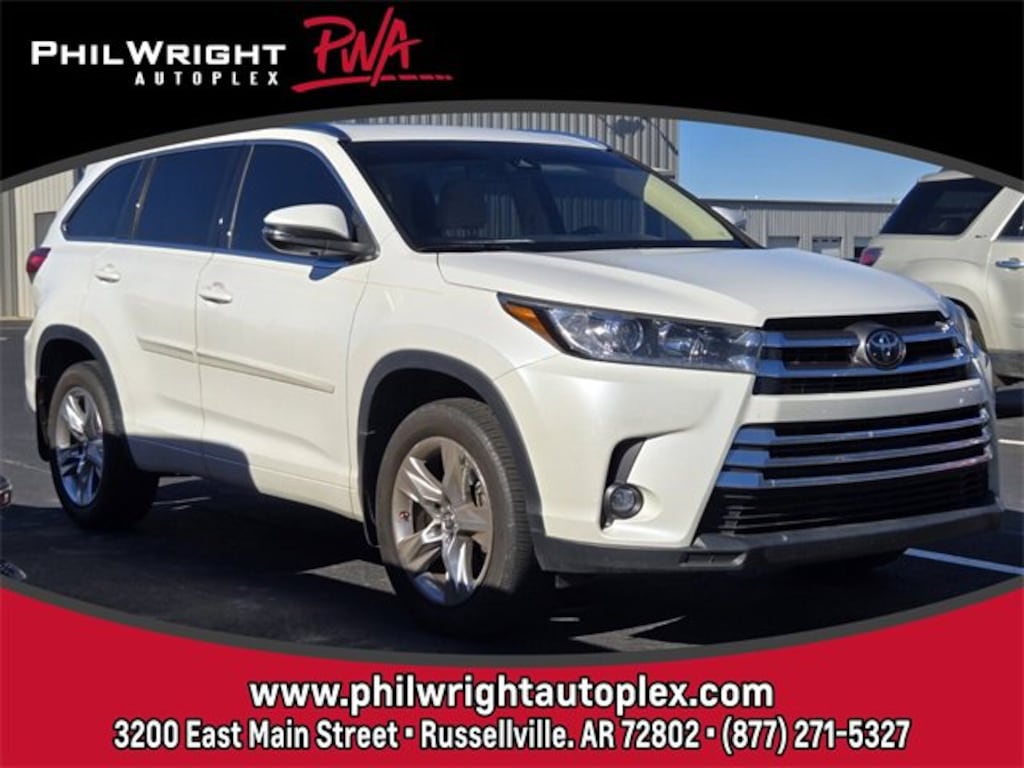 2019 Toyota Highlander Limited.VIN 5TDYZRFH4KS303292.This Highlander Limited is a great example of why Toyota SUVs continue to be some of the most trusted vehicles on the road. It has a clean, upscale look, a smooth ride, and the kind of comfort that makes it easy to drive every day or load up the family and head out on a long trip. It feels solid, refined, and well built.Performance.3.5L V6 engine that delivers strong, smooth power.Front wheel drive with confident on road handling.Quiet ride with a comfortable suspension setup.Excellent balance of performance and efficiency for daily driving.Exterior Styling.Limited trim with a polished, upscale appearance.Clean body lines that still look modern and timeless.Well proportioned design that looks right in any setting.A great looking SUV that has aged extremely well.Interior Comfort.Limited trim interior with premium materials.Spacious seating for passengers and cargo.Comfort focused cabin that is quiet and easy to enjoy.Ideal layout for commuting, family trips, or weekend travel.Technology.Touchscreen display with easy to use controls.Backup camera and driver assist features.Well designed dashboard with everything within reach.Why Buy?The Highlander Limited is known for comfort, reliability, and long term value, and this one fits that reputation perfectly. It has a strong maintenance history, recent service, and the kind of build quality that makes it a smart choice for years to come. If you are looking for a dependable midsize SUV that feels upscale without being complicated, this Highlander is a solid option.Phil Wright Autoplex.3300 E Main St, Russellville, AR 72802.479-968-1555.www.philwrightautoplex.com.Apply for Financing!www.philwrightautoplex.com/FinancePreQualForm